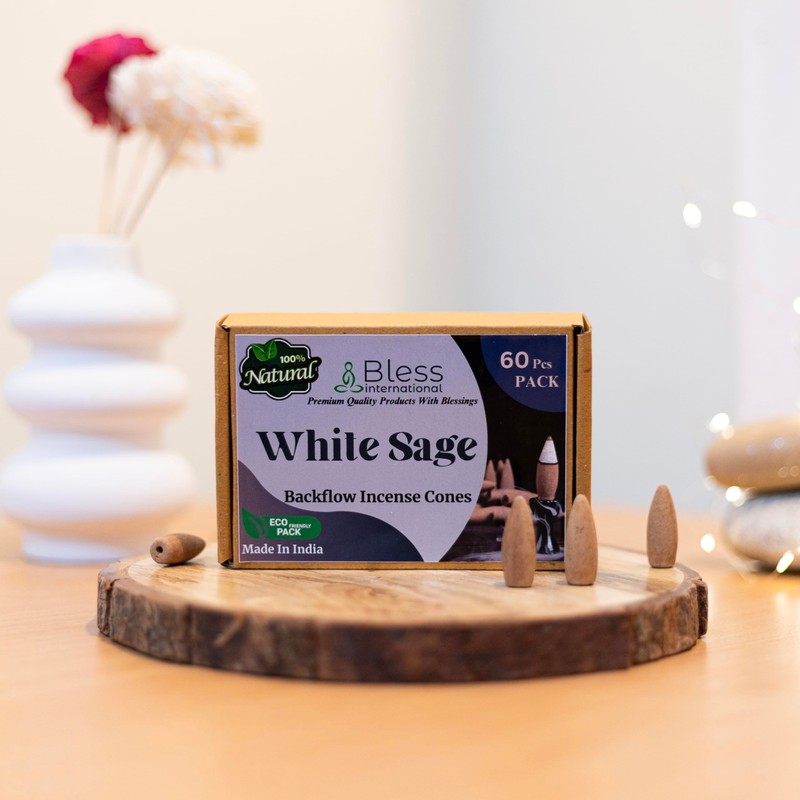 Bless-International White-Sage-100%-Natural-Incense-Backflow-Cones-for-Waterfall Handmade-Organic-Chemicals-Free for-Purification-Relaxation-Positivity-Meditation The-Best-scents-60-Count