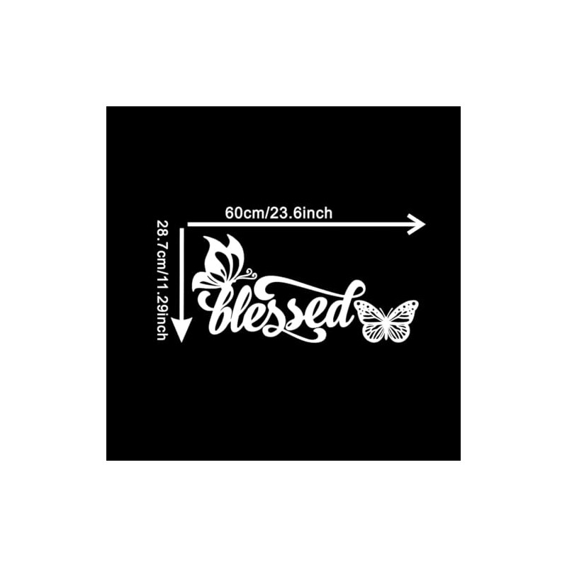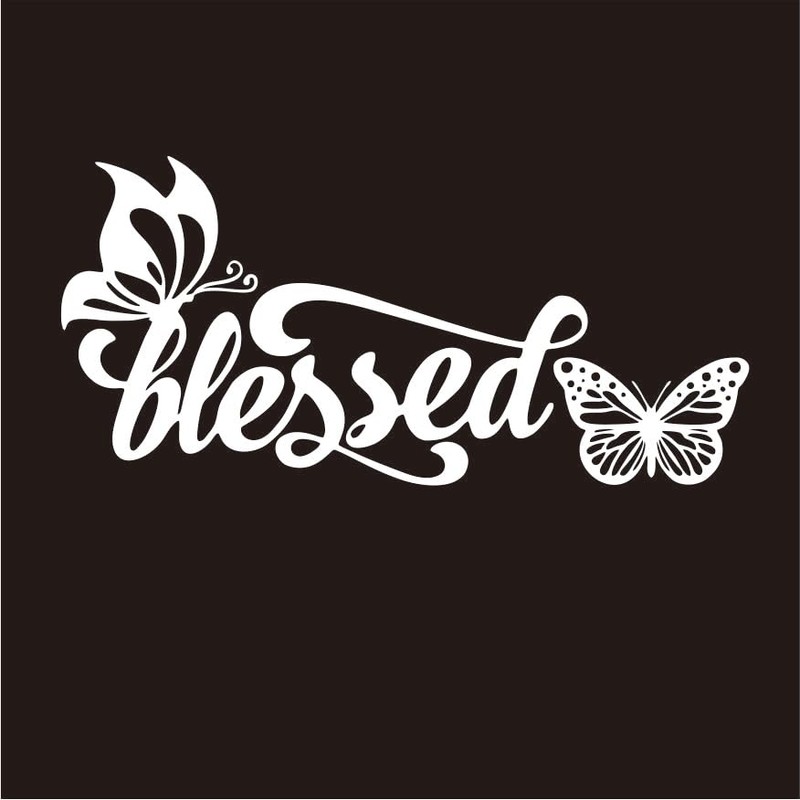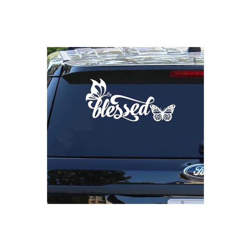 • This elegant and uplifting car decal features the word "Blessed" artfully designed with a delicate butterfly motif, creating a beautiful and inspirational visual.
