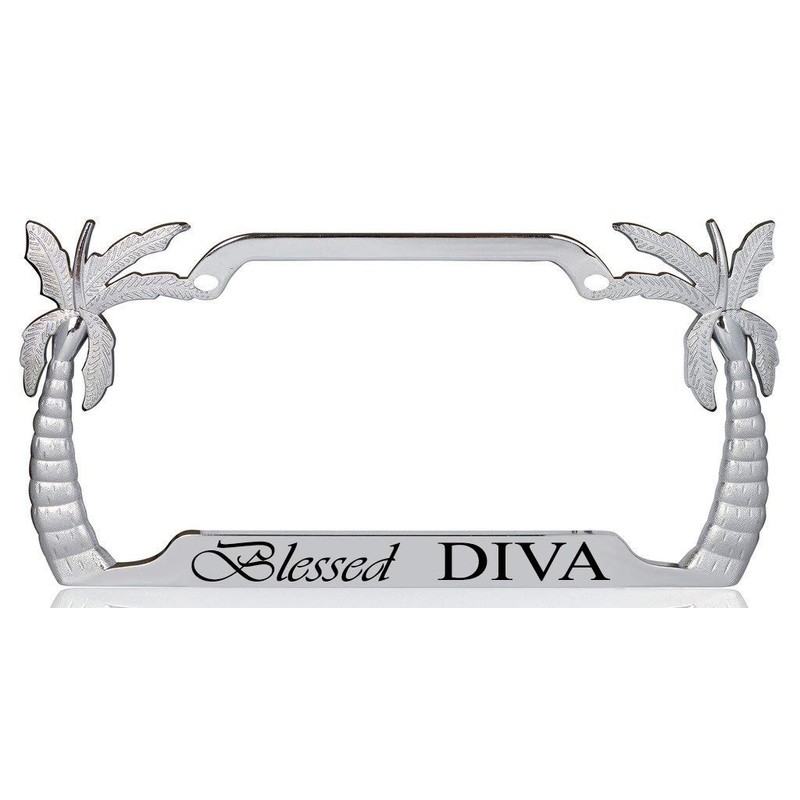 Blessed Diva Palm Tree Design Chrome/Black Metal Auto License Plate Frame Car