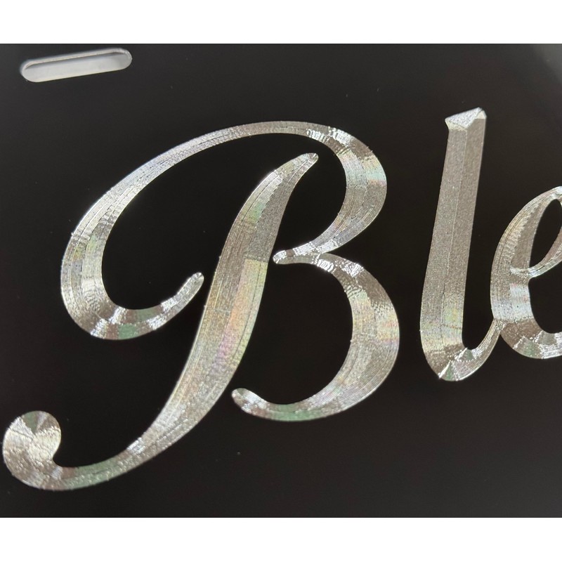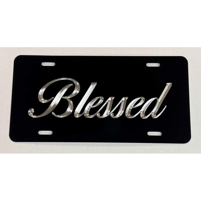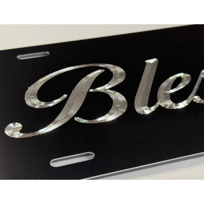Blessed Logo Car Tag Diamond Etched on Black Aluminum License Plate