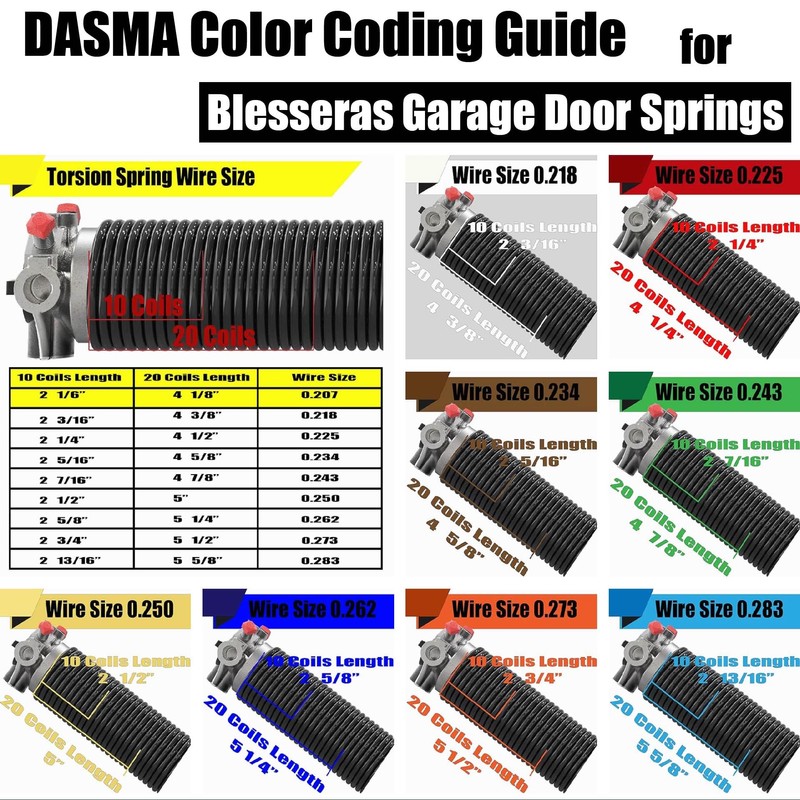 Blesseras Garage Door Torsion Springs Replacement with Non-Slip Winding Bars, Oil-Free Electrophoretic Coated Coil 2-Inch Diameter Spring Set, 1 Pair, 218 x 2'' x 30''