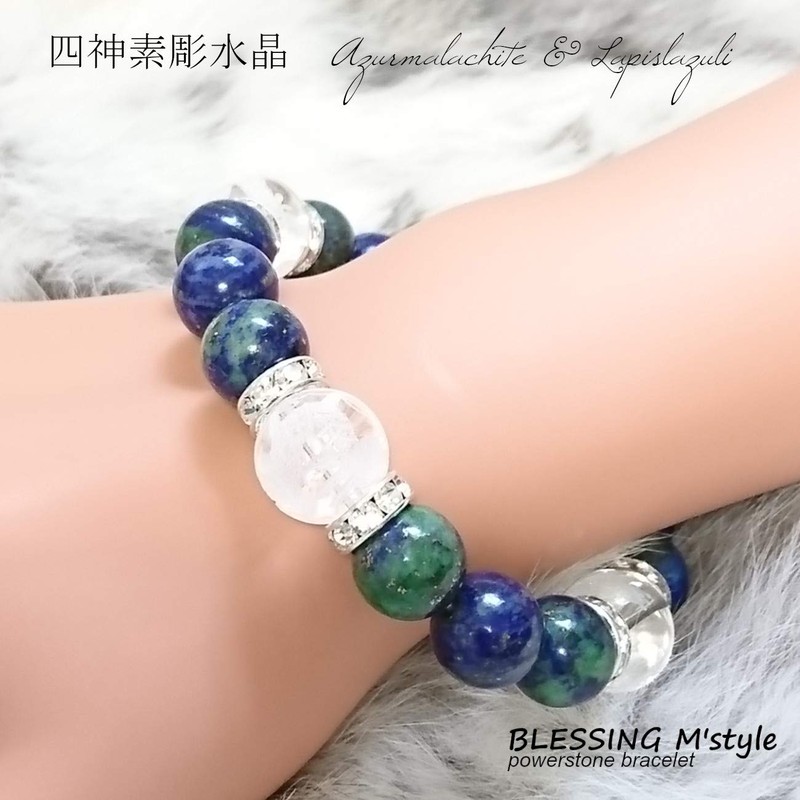BLESSING M'style Lucky Amulet Amulet, Strongest Four Beasts, Men's Natural Stone, Power Stone, Azuromalachite, Lapis Lazuli, Includes Original Drawstring Bag, Gemstone