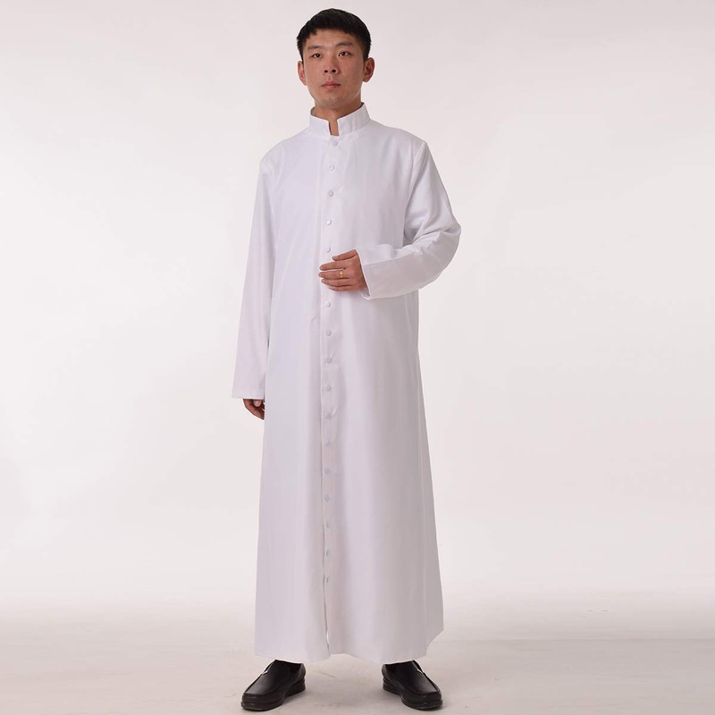 BLESSUME Catholic Cassock Church Priest Roman Robe Clergy Liturgical Vestments (L, White)