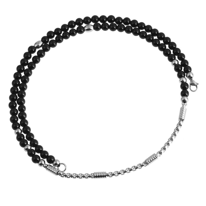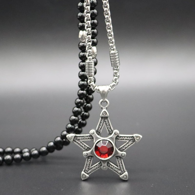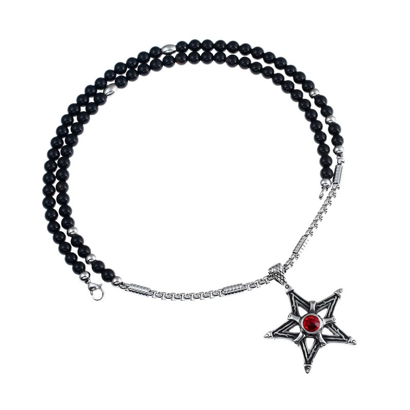 BLEUM CADE Double-Sided Star Wiccan Witch Magical Power Pentagram Pendant Necklace with Black Agate Stone Chain 26" (Red)