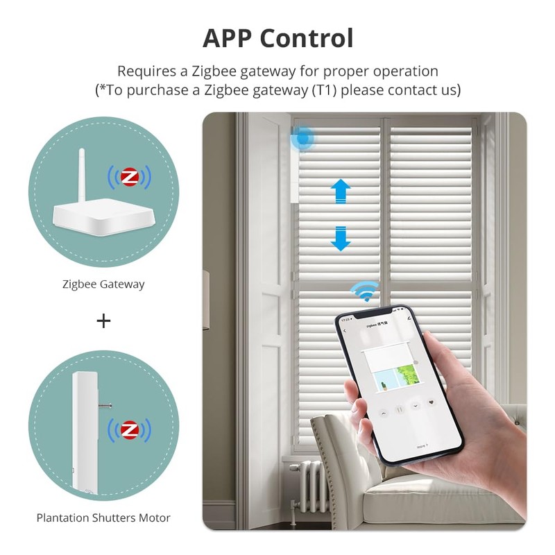 - Smart App Control: Connect the Zigbee version to the Tuya Smart App for seamless control from your smartphone. Schedule, automate, and manage your shutters from anywhere.【NOTE: A Tuya Zigbee Hub is Required.】