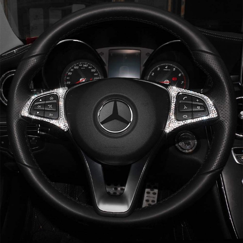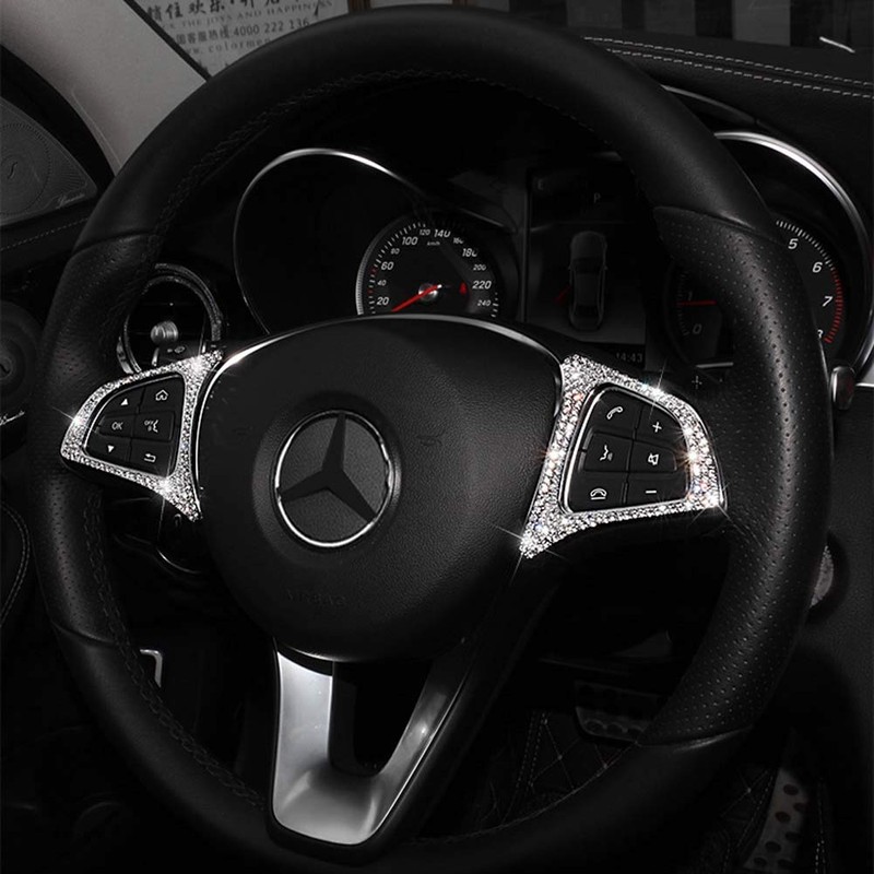 Bling Bling Crystal Steering Wheel Button Frame Cover Car Interior Trim Sticker Decals for A B C V Class CLA GLA CLS GLC GLE GLS SLC SL
