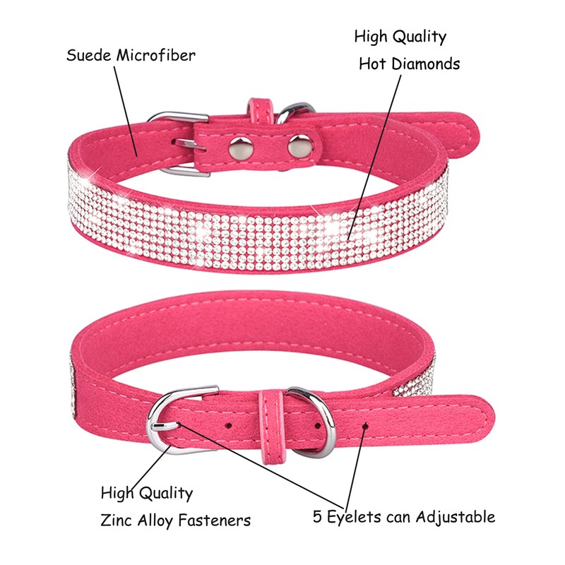 Bling Dog Collar for Small Medium Large Dogs, Rhinestone Dog Collars for Girl and boy Dog, Diamond Puppy Collars, Adjustable Leather Suede SOFE Cat Collar (S(10.6"-13"/27CM-33CM), Rose Red1)