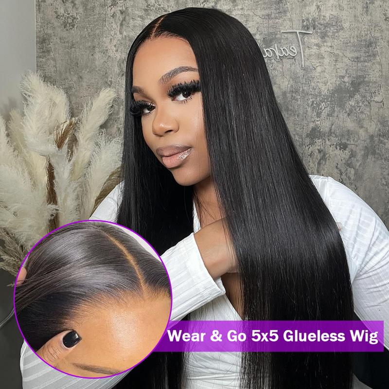• Lace Frontal Design: The 4x6 / 5x5 Straight Gluless transparent lace Closure design of this human hair wig gives it a natural look that blends seamlessly with your skin tone. It also makes styling easy - you can part your hair any way you want!