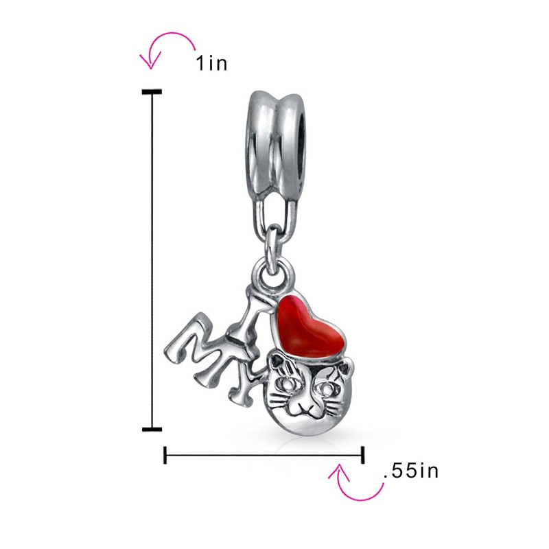 Bling Jewelry I Love My Cat Red Enamel Heart Dangle Bead Charm .925 Sterling Silver