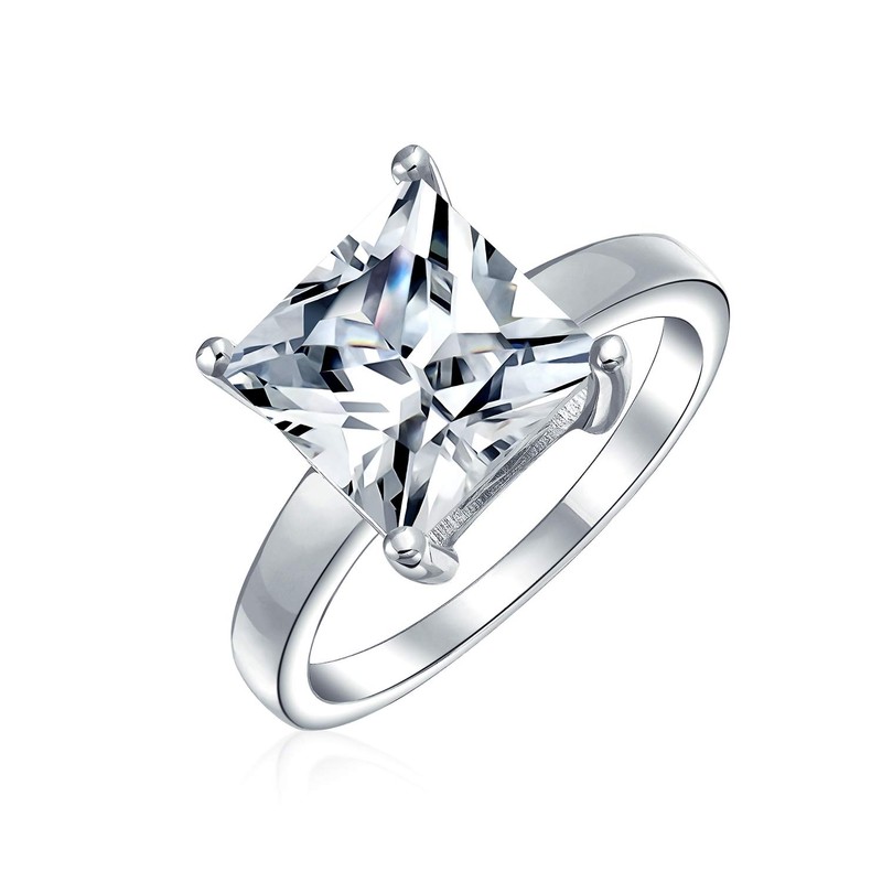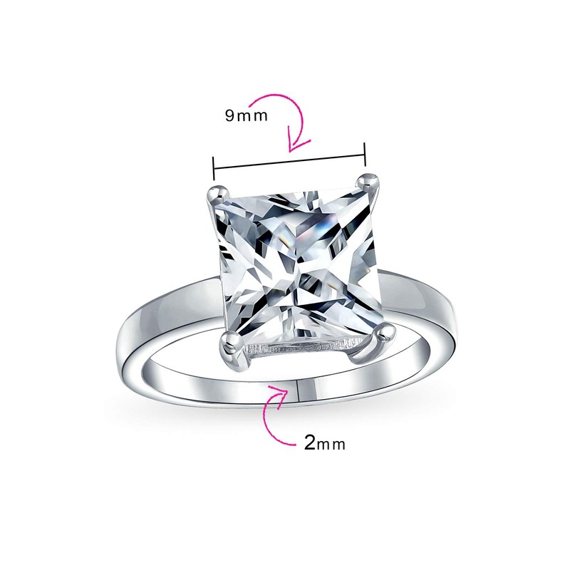 Bling Jewelry Sterling Silver CZ Princess Cut Solitaire Engagement Ring
