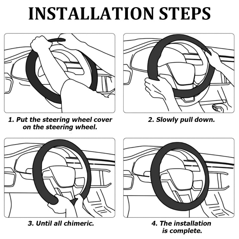 - 【Elastic Steering Wheel Cover】: The inner ring of the steering wheel cover is sewn with a thick thread pattern. It has no rubber ring so the installation is very quick and easy. Just place the cover on top of the steering wheel. Press and hold the upper part of the cover and gradually lower it with both hands on either side to tighten.
