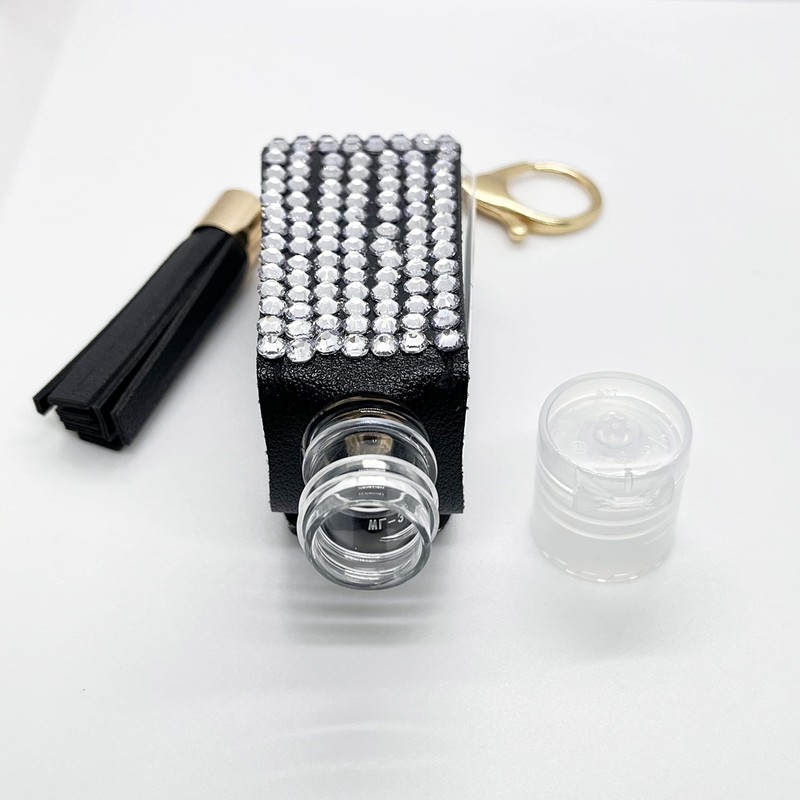 Bling Travel Bottle Case with Keychain, Mini Travel Bottles for Alcohol, Toner, Hand Soap, Small Refillable Containers Portable for Handbag, Purse,Outdoor Camping Traveling (Black And Grey)