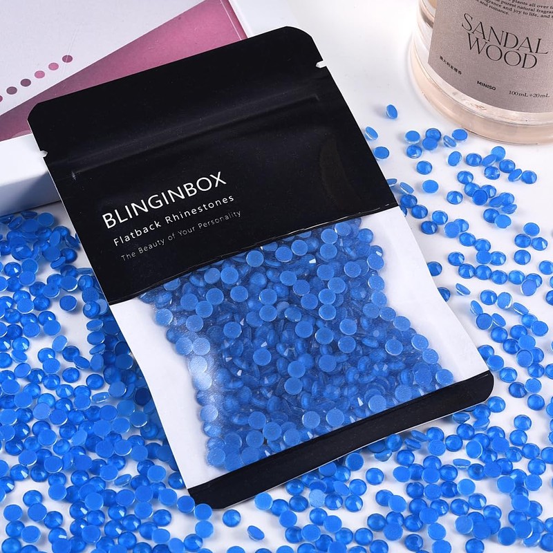 Blinginbox Flatback Rhinestones Round Gems, 1440pcs Luminous Series Glass Stones Neon Gems Non Hotfix Crystal Rhinestones for Nail Charms Crafts Clothes Tumblers,New Blue Neon,SS20.