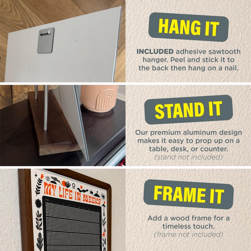 - Premium Habit Tracker – Made from Durable Aluminum Crafted from high-quality aluminum, this 11”x17” habit tracker is sleek, modern, and built to last. Whether you're using it as a countdown calendar, productivity planner, or wall display, it’s made to inspire consistency and pride in your progress. Fits standard 11x17 frames and works great with Sharpies.