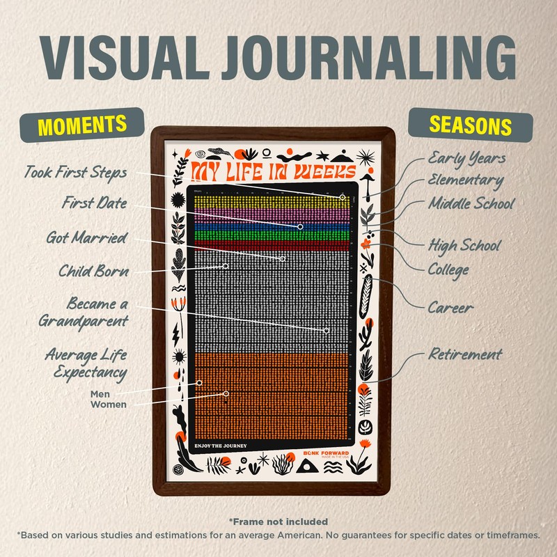 - Visualize Your Life in Weeks – Stay Intentional Every Day See your life at a glance with this powerful life calendar. Designed to help you live intentionally and focus on what matters most, this minimalist wall planner keeps your goals visible and your time meaningful. A perfect tool for habit tracking, long-term reflection, and celebrating personal growth.