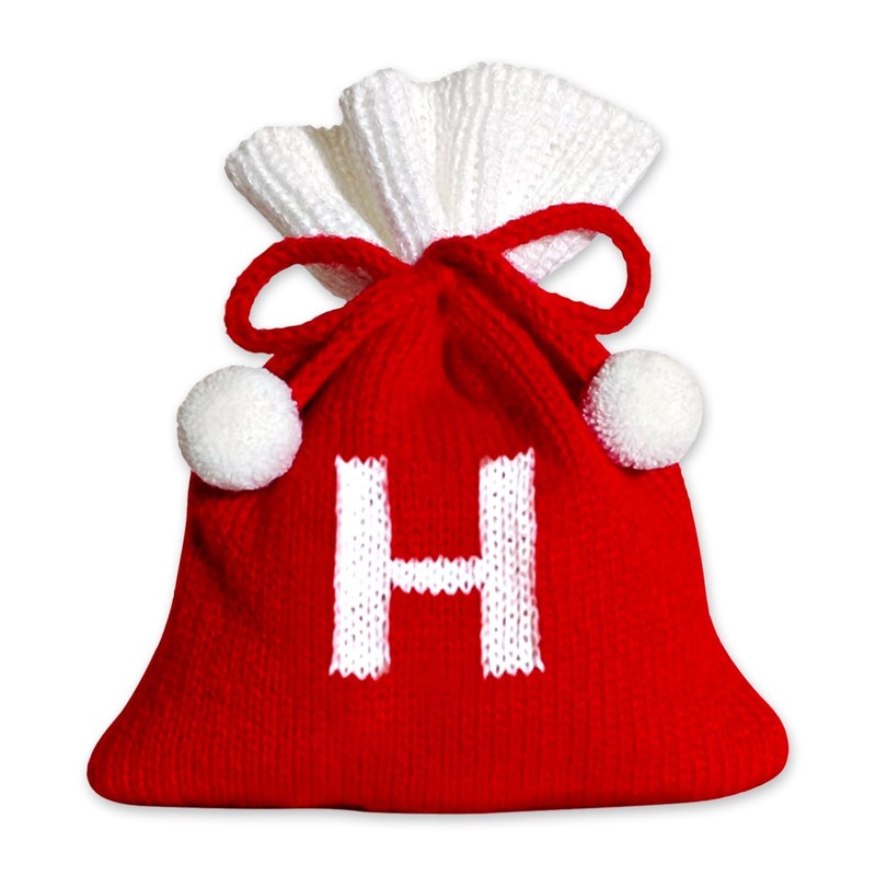 Blinket Christmas Knit Drawstring Gift Bag Xmas Red and White Santa Sack with Alphabet Letter Design Reusable Wrapping Bag for Xmas Candy Goodie Party Favor 6.5 x 5.1 Inch Letter H