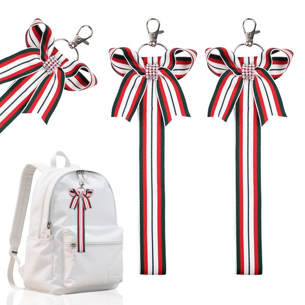 Blinket Red White Green Cheer Bow Keychain Holder for Backpack – Mexico Flag Ribbon Hanging Streamer with Clip – Cheer Bow Organizer Strap for National Day Event Parade Fiesta Sports Accessory