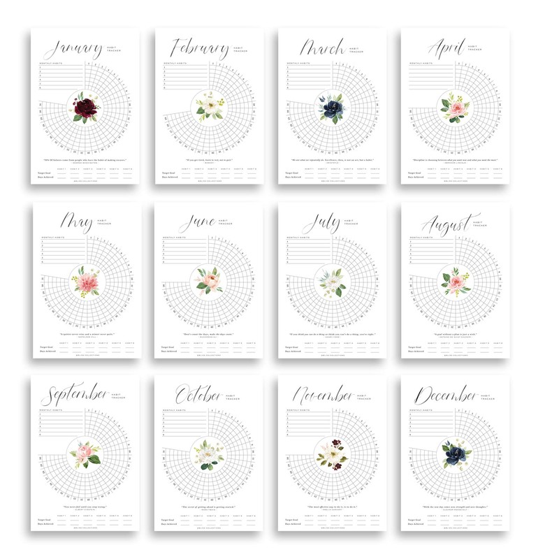 - 12-MONTH HABIT TRACKER: Beautifully designed with a monthly grid to help keep track of 6 habits for the month ahead. Each month features a unique quote to keep you motivated throughout the month.