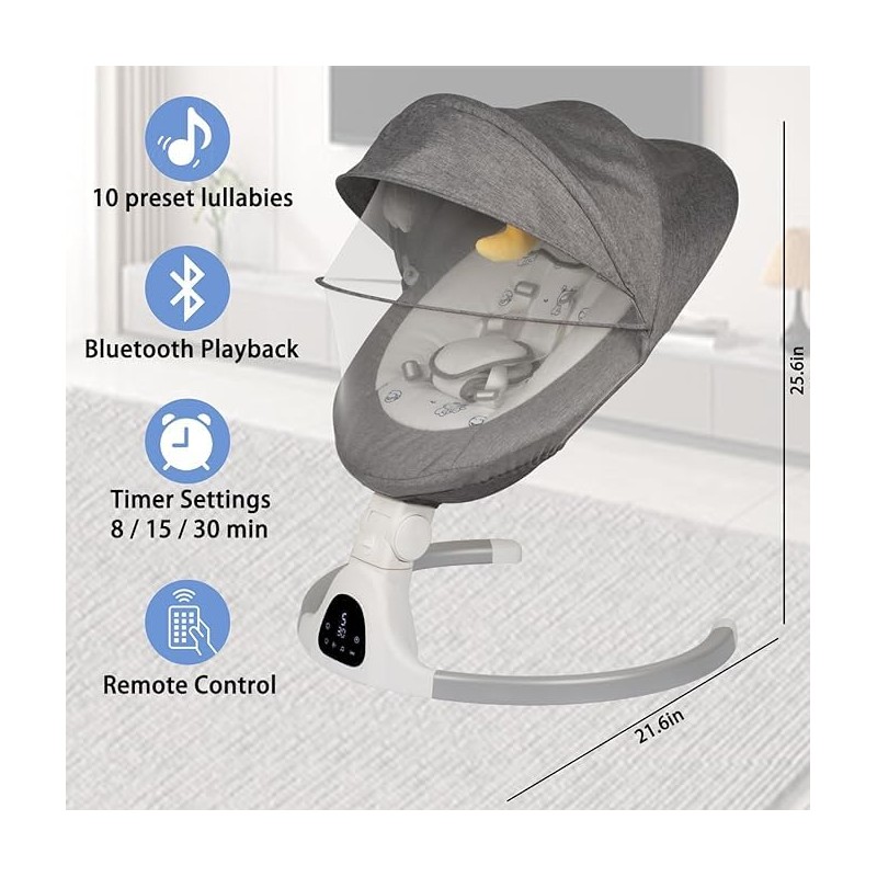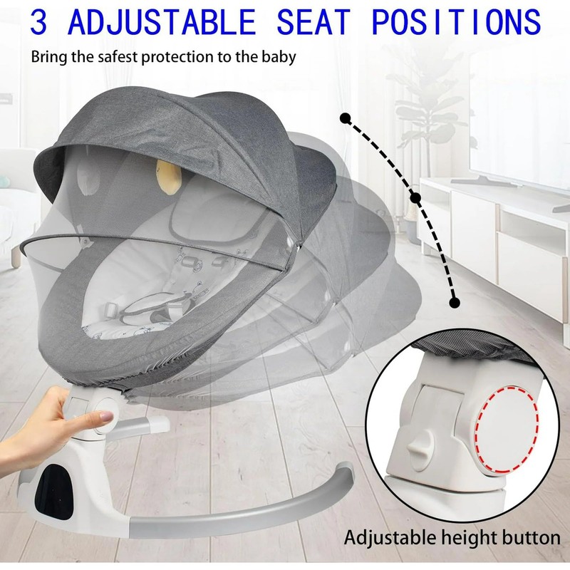 • This baby swing is designed to grow with your child, making it a must-have for newborns and toddlers. Whether at home or on the go, this swing provides a safe, comfortable, and entertaining space for your baby.