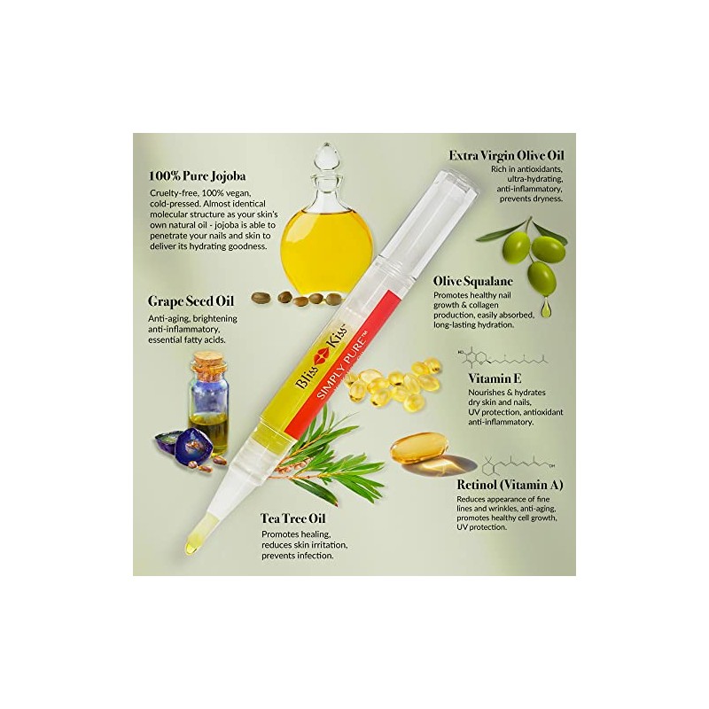 Bliss Kiss | 1 Crisp Fragrance | Nail Oil Cuticle Pen w/Vitamin E & Jojoba⏤Nail Strengthener Nail Growth Treatment for Brittle Peeling Breaking Thin Nails