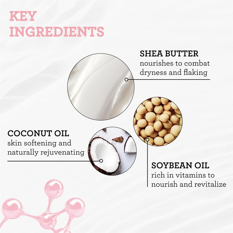 - Benefits - Shea butter nourishes to combat dryness and flaking, while coconut oil deeply moisturizes to leave skin soft.