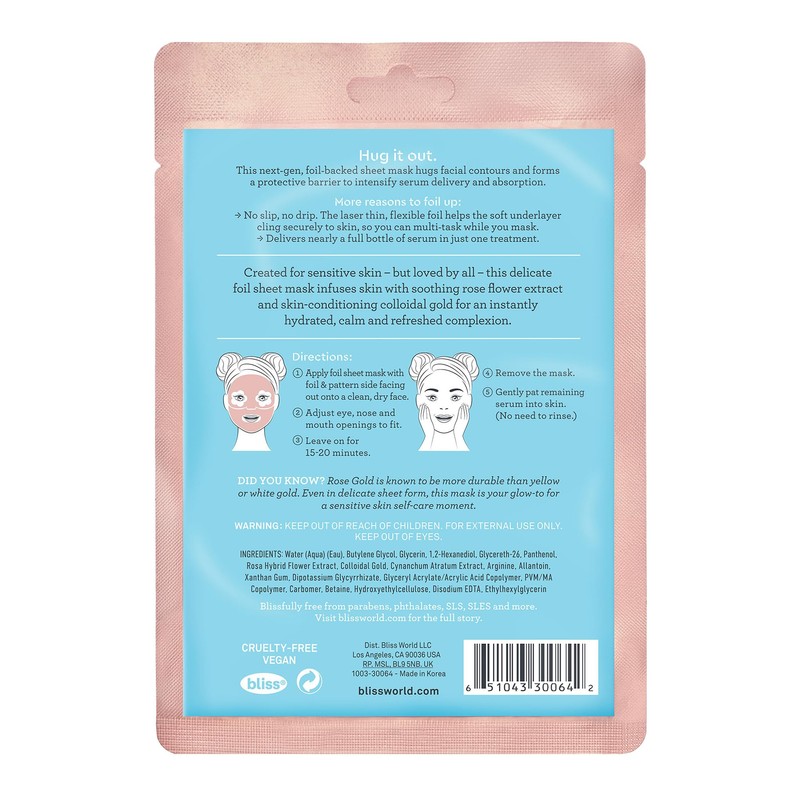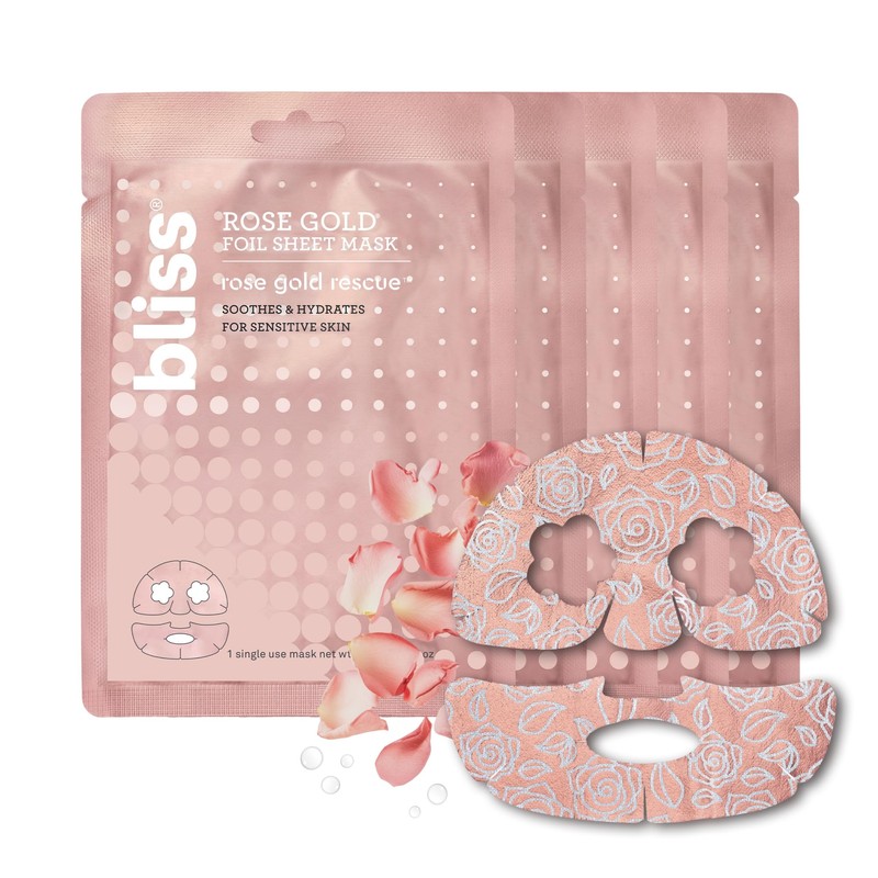 - Bliss Rose Gold Rescue Soothes & Hydrates for Sensitive Skin Foil Sheet Mask, 5 pack