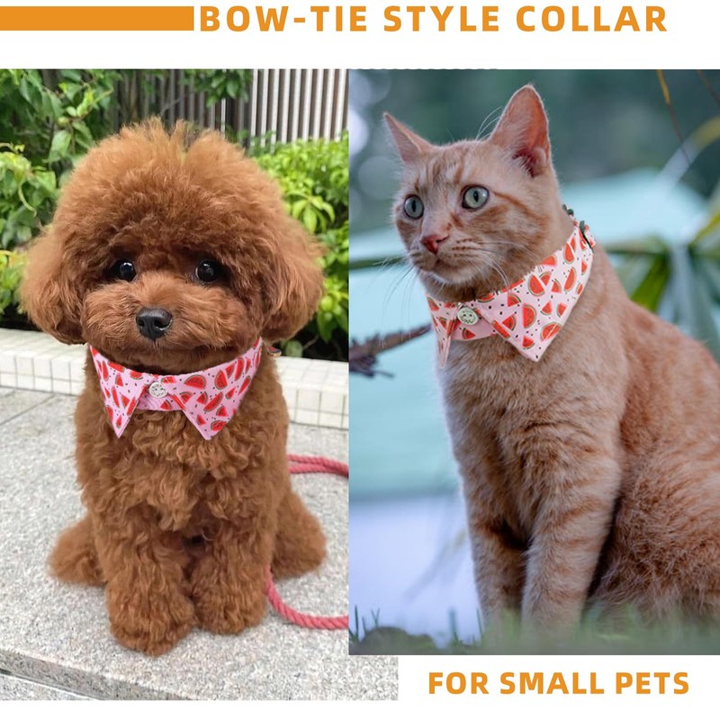 BlissBud Small Dog Collar with Bell,Pet's Badana with Shirt Bowtie Collar for Kitten with Fruit Print,Watermelon,Small