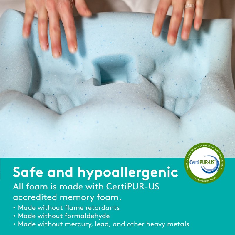 - COOLING MEMORY FOAM: Our ear pain pillow is made from CertiPUR-US accredited gel-infused cooling memory foam. It supports the head, protects the ear, and keeps you cool and comfortable.