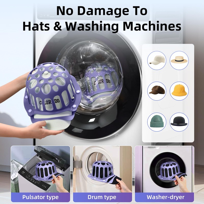 - How to Use 1.Place your hat inside the hat washer cage, ensuring it’s properly positioned on the double-layered hat holder. 2.Secure the cage with the clips to prevent it from opening during the wash. 3.Load the cage into your washing machine as you would any other item. 4.Select your preferred wash cycle and let the machine do the work. 5.Once the wash is complete, hang the cage up to dry using the integrated hooks.