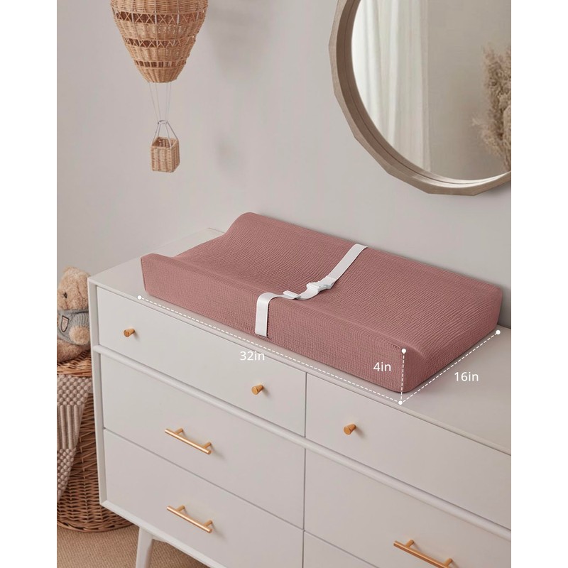 Blissful Diary Muslin Baby Changing Pad with Waterproof Lining Foam, Diaper Changing Table Pad with Cover for Dressers (Dusty Pink, Rectangular)