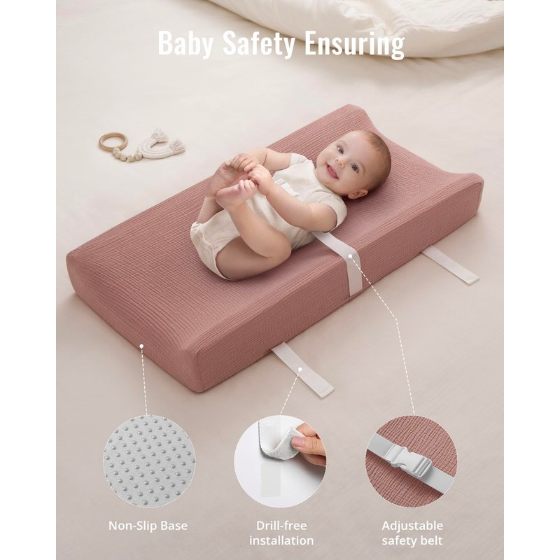 - Baby-Safe Crafting: The contoured anti-roll sides and quick-release safety belt keep your baby securely on the changing table pad, while the adhesive straps and non-skid bottom ensure stability, making diaper changes smooth and bonding moments sweet