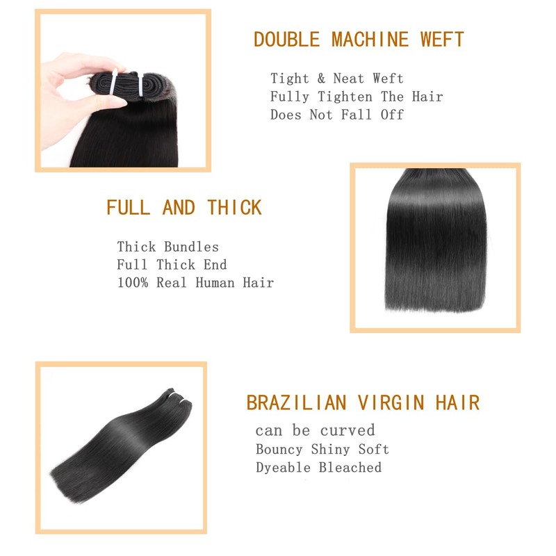 BLISSHAIR Sew In Hair Extensions Real Human Hair Straight 12 Inch Weft Hair Extensions Full Head Double Weft Hair Single Bundle for Women 100 Grams Natural Color (Straight, 12inch)