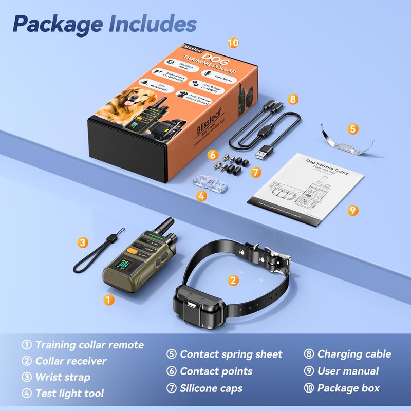 Blissleaf Dog Shock Collar, IPX7 Waterproof Dog Training Collar with Remote, 5280FT, 4 Training Modes, Vibration, Electric Shock Rechargeable E-Collar for Large Medium Small Dogs (15-120 Lbs)