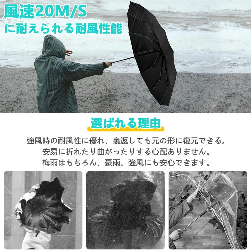 - Folding umbrella with excellent wind resistance / 12-rib structure: This folding umbrella is designed to withstand strong winds. Made of fiberglass and carbon fiber ribs, it is bend-resistant and wind-proof. 12-rib construction for extra strength