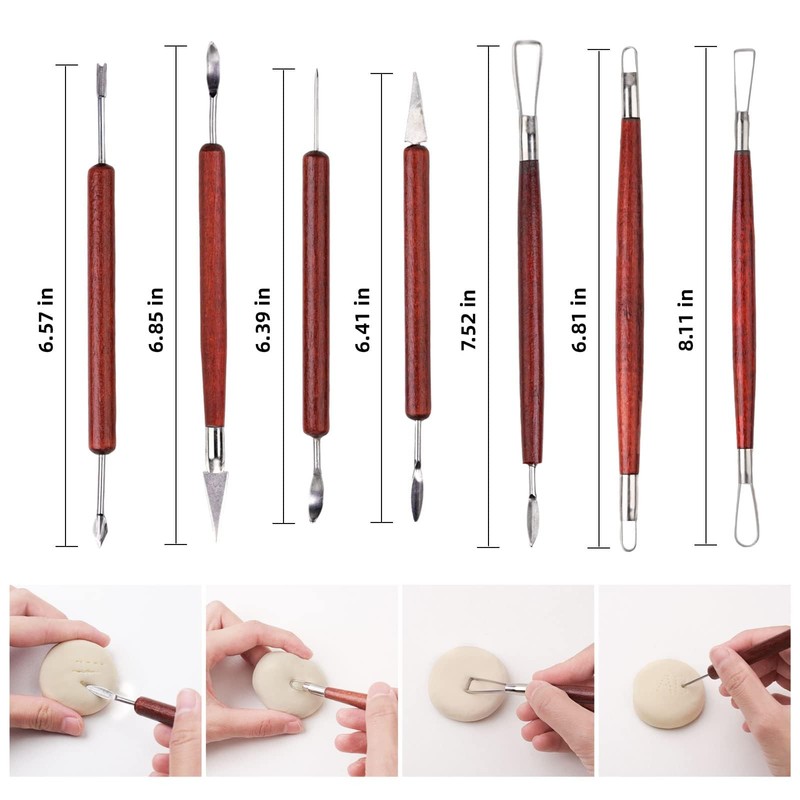 - Sturdy Material: Made of stainless steel and wood, our carving tools are sharp and sturdy enough for sculpting soft materials, including polymer clay, ceramic clay, fondant, cake, dough, wax, soap, etc. Please note that the metal parts of the tool are sharp, so be careful to avoid scratches when using it.
