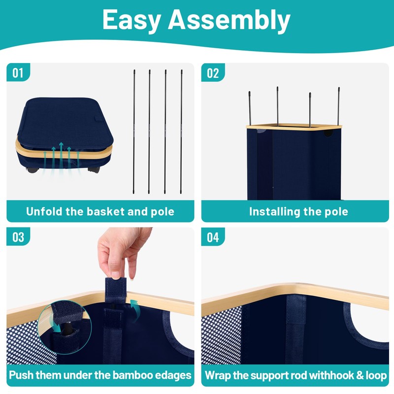 - Premium Fabric: Made of Oxford fabric, simply wipe down the interior with a damp sponge or cloth to clean. The top frame will keep the tall laundry basket upright even when empty. Be sure to push the rod into the edge of the frame to maintain shape