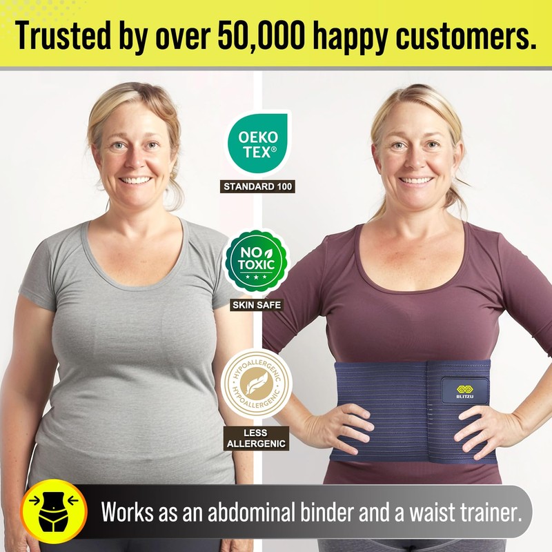 BLITZU Umbilical Hernia Belt for Men & Women, Abdominal Binder Adjustable Truss Support with 2 Compression Pads for Naval, Ventral, Incisional, Epigastric, Belly Button Hernias, Pre Post Surgery 3XL
