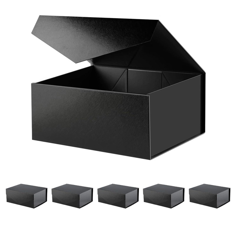 BLK&WH BLK&WH 6 Gift Boxes 9x6.5x3.8 Inches, Black Gift Boxes, Groomsman Boxes, Collapsible Boxes with Magnetic Closure Lids for Gift Packaging (Glossy Black with Grass Texture)