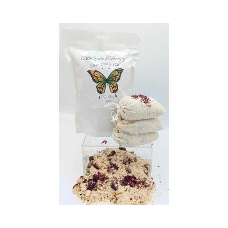 Blkbutterfli Designz Rose and Lavender Goat Milk Salt Tea Bags, Perfect for Baths, Dry Salt Scrub (4-4oz Bags) (Rose)