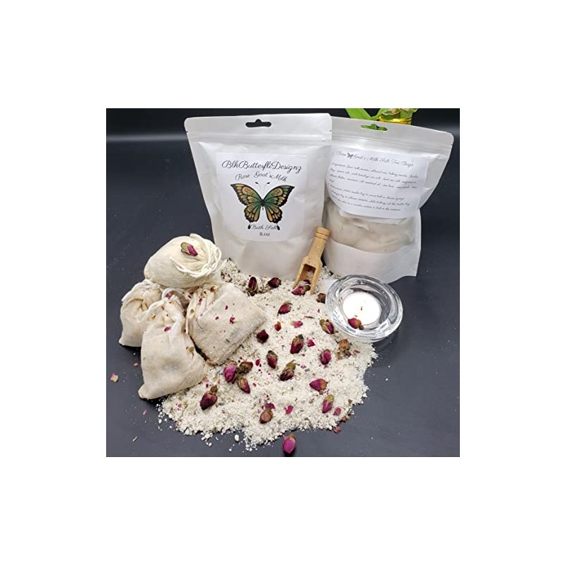- This is the “go to” bath product when you are in need of relaxation and feeling totally pampered. The combination of the powdered goats milk, pink Himalayan salt and kaolin clay leaves your skin feeling soft all over. The dried rose petals | buds are a good source of vitamin C and essential oil in the bath tea are soothing and relaxing. Our handcrafted bath tea isn't just a bath....it is an experience!