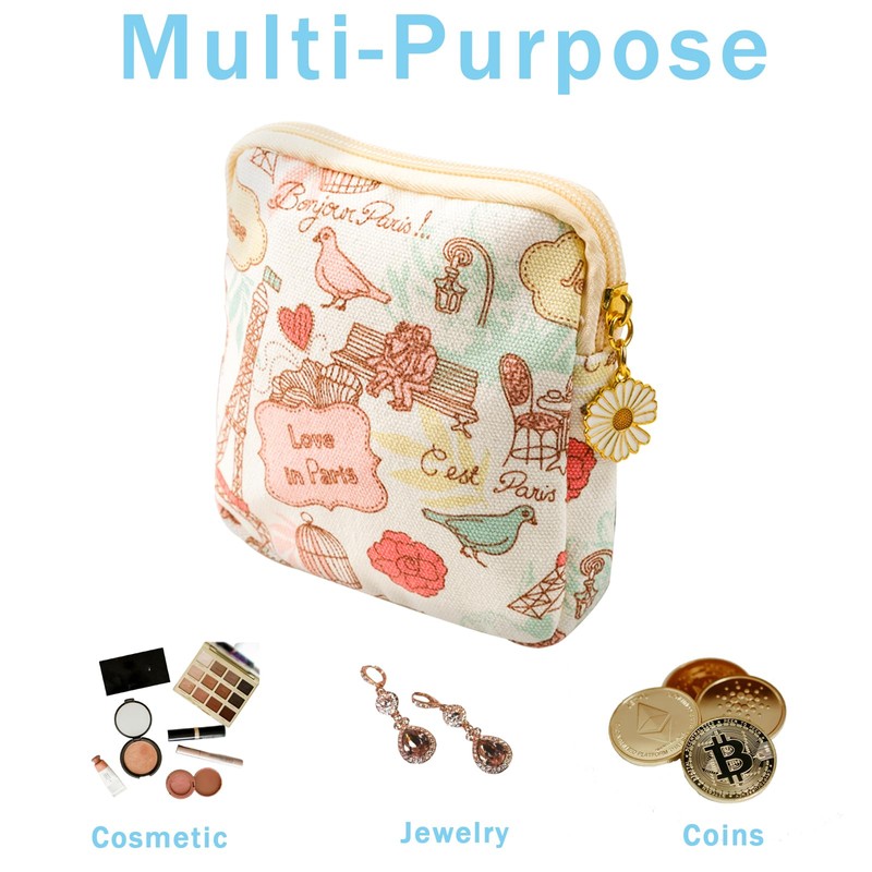- Widely used: the sanitary pad bag is suitable for storing sanitary napkins, inserts, pads and tampons. It can also be used to store keys, coins, change, bills, lipstick, cosmetics, jewelry, etc