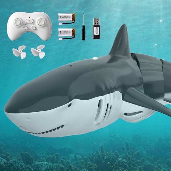• 【Waterproof RC Shark with Ultra-Tough ABS Body】Designed for adventurous kids aged 4-7, this RC shark (a disguised remote control boat) resists splashes, sand, and collisions. Its waterproof design (including the remote control) with an ultra-tough ABS body makes it ideal for rough, saltwater play in pools or lakes.(NOTE: The remote control shark only plays in the water).