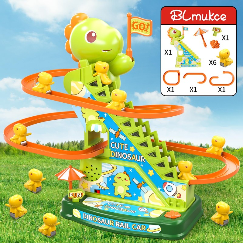 BLmukce Small Dinosaur Climbing Slide Stair Toy for Toddlers 3-5 - Electric Dinosaur Climbing Stairs Tracks Slide Toy with Light and Music, Toddler Toys Birthday Gifts for 3 4 5 Years Old Boys Girls