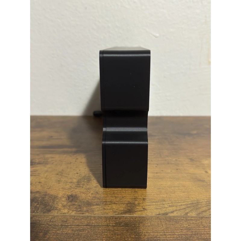 - **Mounting Options:** Can stand on a table or shelf, or be hung on a wall using the two holes on the back for small screws