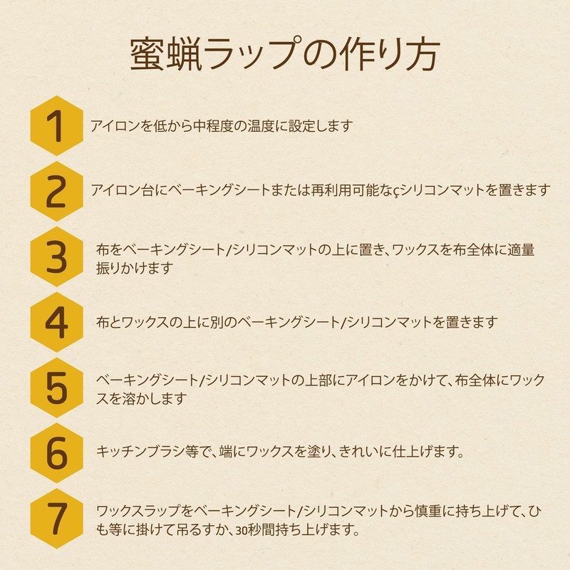 Blocks of beeswax, tree resin and coconut oil; Makes up to 10 beeswax wraps or 1 square meter fabric