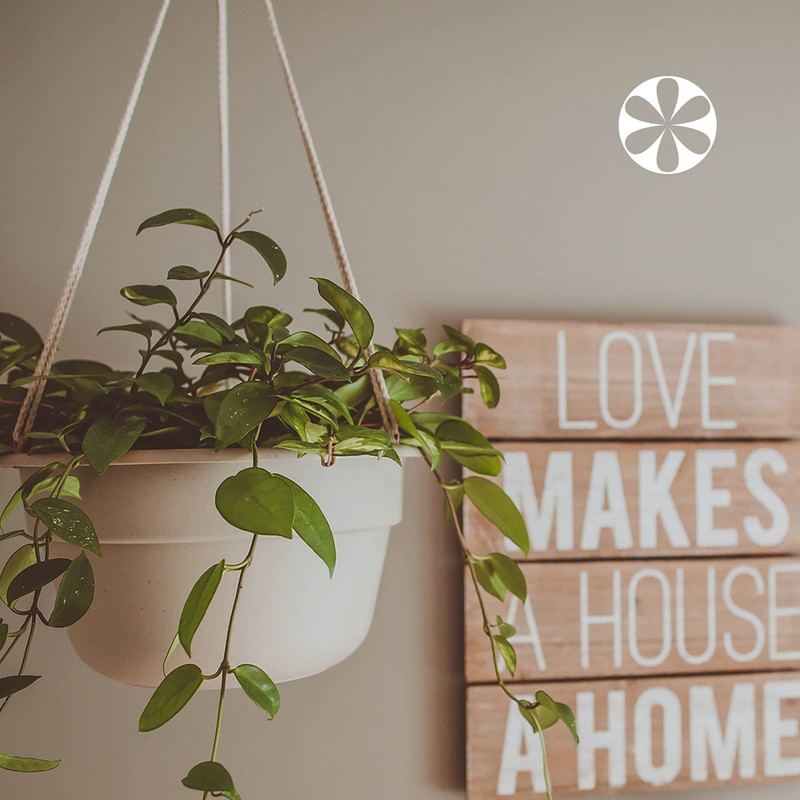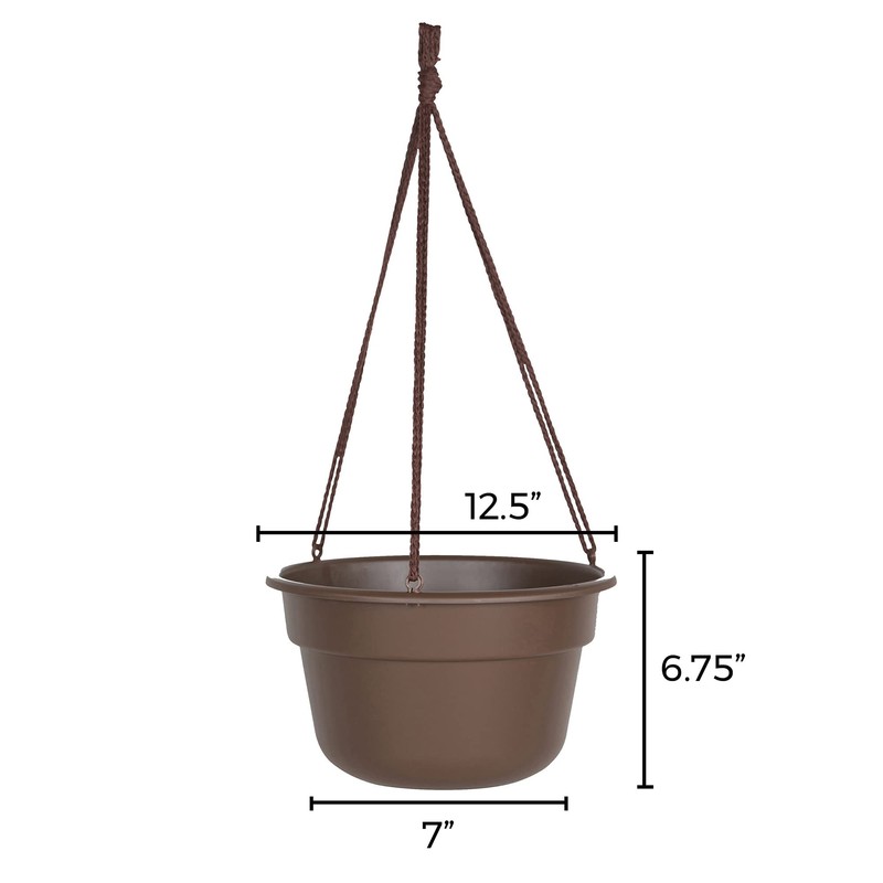 DURA COTTA COLLECTION by Bloem: The Bloem Dura Cotta Hanging Basket will quickly become one of your favorite pots because it helps keep your plants from drying out and will reduce the time you spend watering. You will love how the sturdy polypropylene construction looks like classic clay, but won’t chip, crack, or discolor. Inside the hanging basket, there is a hidden reservoir that holds approx. 1”-2.5” (depending on planter size) of water. The self- watering disk keeps dirt and roots above the hidden reservoir while constantly providing healthy “greenhouse-like” moisture through the evaporation process. Includes matching macramé cords for hanging. Made in the USA. How does self- watering disk work? The potting mix is held above the water line by a sturdy screen. The water chamber is connected by small porous channels filled with soil, which then acts as a wick. As water is used by the plant or evaporates off the surface of the soil, capillary action draws more water up from below. The soil has just the right amount of water all the time, but also maintains air pockets, which the plant roots also need to stay healthy. Self watering disk and hidden reservoir ensures a consistent supply of water to your plants and prevents root rot Includes matching macramé cords Optional removable drainage plug included Top width 12.5 in (x) Base width 7 in (x) Height 6.75 in Matte finish is perfect for resisting scratches, dirt, and fingerprints 100% UV stabilized polypropylene plastic ensures long lasting color and withstands extreme weather conditions + BPA free