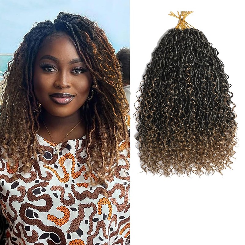 Blonde Goddess Locs Crochet Hair 14inch Boho Faux Locs Hair with Curls Pre Looped River Locs Crochet Hair for Women Locs Synthetic Hair Extensions (1B/27,14 Inch)