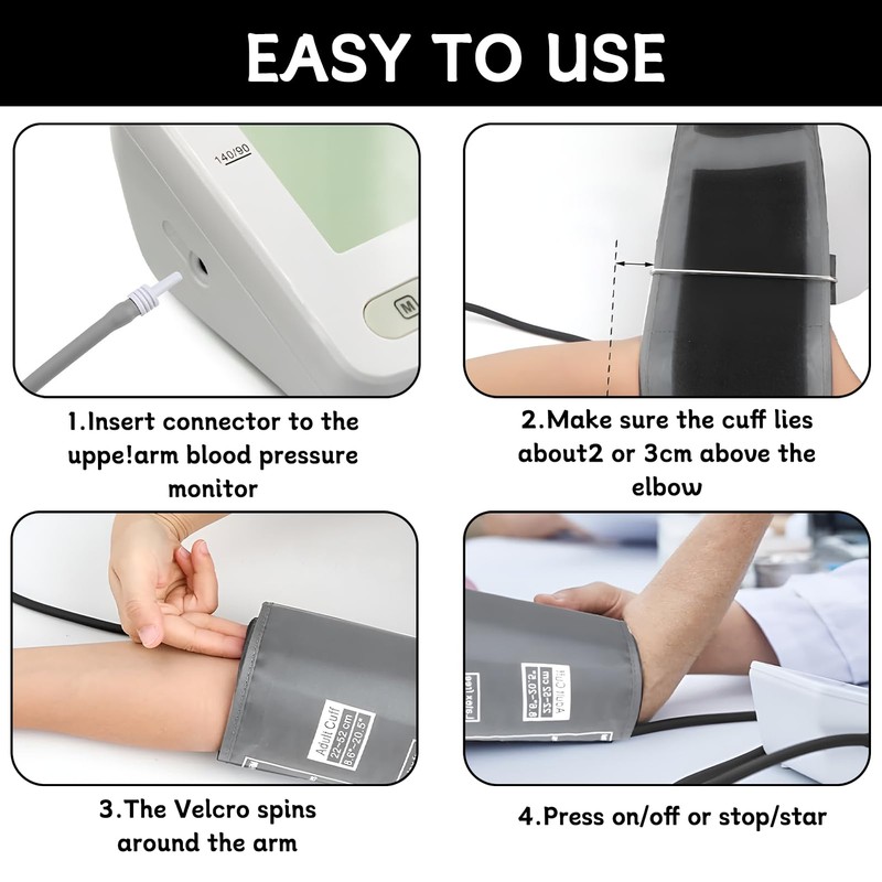 - Easy to use: blood pressure monitor upper arm cuff is very easy to use. You just need to disassemble the old blood pressure cuff and then select the appropriate port to install the new blood pressure cuff.