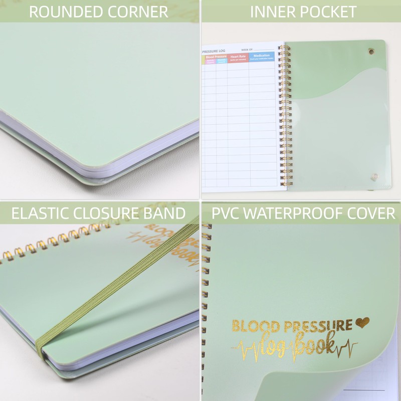 - INNER POCKET & ELASTIC BAND - The inner back pocket allows you to keep notes, receipts, and everything related to your blood pressure in one place. The blood pressure book is also equipped with an elastic band, which can be firmly sealed.