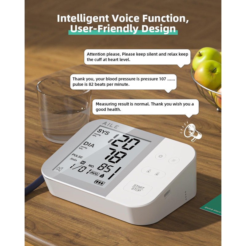 • ✔【Package Includes】 We provide 5-year support and friendly 7*24 hours customer service, your package: AILE sphygmomanometer, portable cloth bag, wipes, C-type cable, 4 AAA batteries, large cuff, instruction manual, quick guide and instruction card.